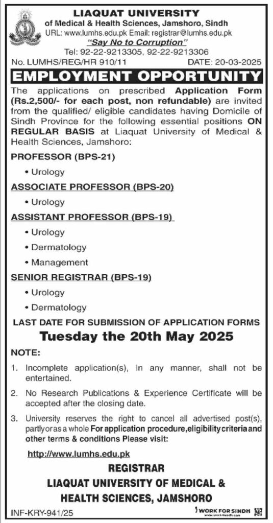 Liaquat University of Medical & Health Sciences Jobs 2025 Advertisement